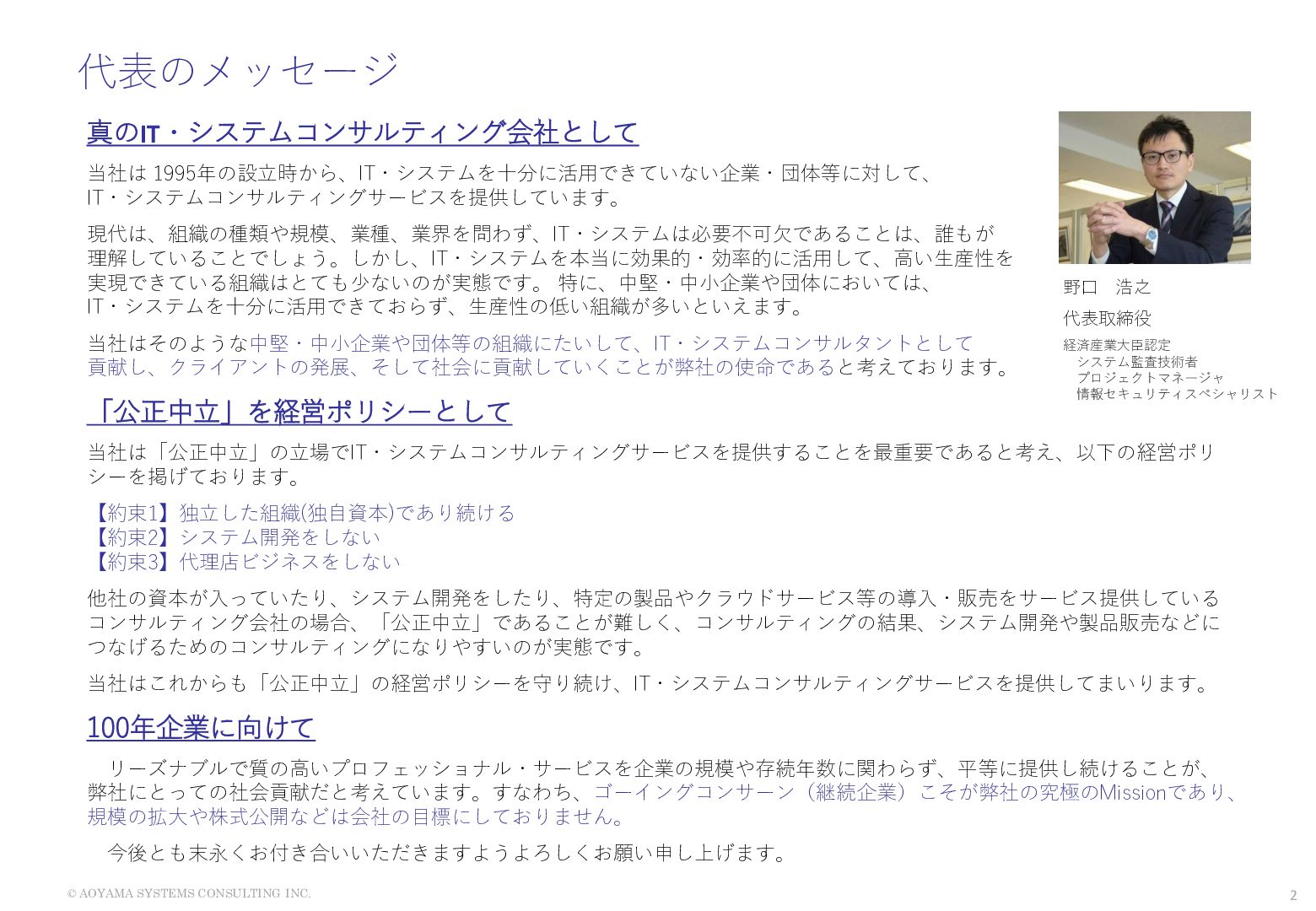 © AOYAMA SYSTEMS CONSULTING INC. 代表のメッセージ 2 野口 浩之 代表取締役