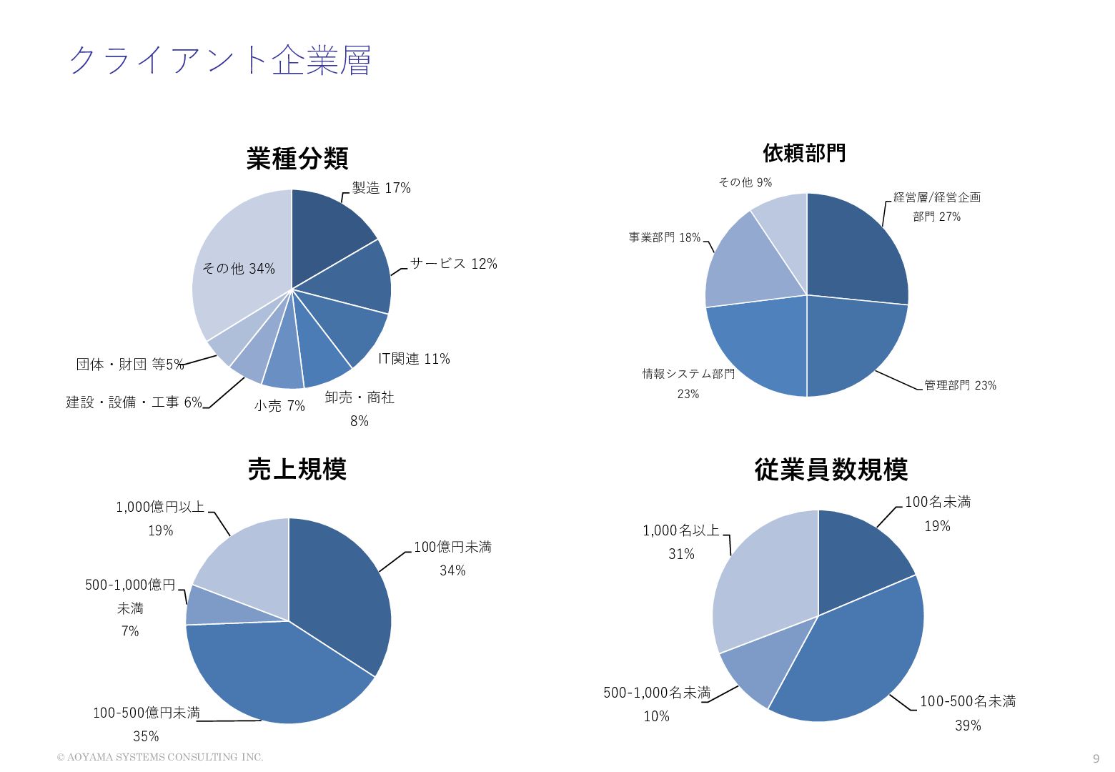 © AOYAMA SYSTEMS CONSULTING INC. クライアント企業層 9 製造 17% サービス