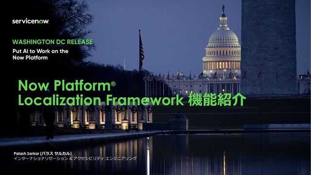 ServiceNow Public ⾃⼰紹介 ⽒名: Palash Sarkar (パラス サルカル) 役職: エンタープライズ グローバリゼーション デプロイメント アーキテクト ロール : グローバリゼーションのSME メール :