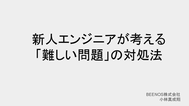 新人エンジニアが考える 「難しい問題」の対処法 BEENOS株式会社 小林真成翔
