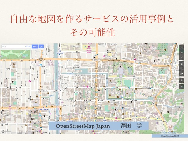 Lorem Ipsum Dolor ࣗ༝ͳਤΛ࡞ΔαʔϏεͷ׆༻ࣄྫͱ ͦͷՄೳੑ OpenStreetMap Japanɹɹᖒాɹֶ ©OpenStreetMap ڠྗऀ