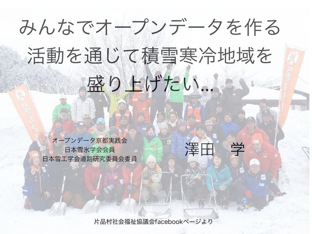 ΈΜͳͰΦʔϓϯσʔλΛ࡞Δ ׆ಈΛ௨ͯ͡ੵઇפྫྷҬΛ Γ্͍͛ͨ Φʔϓϯσʔλژ࣮ફձ ຊઇණֶձձһ ຊઇֶձಓ࿏ݚڀҕһձҕһ ᖒాɹֶ ยଜࣾձࢱڠٞձGBDFCPPLϖʔδΑΓ