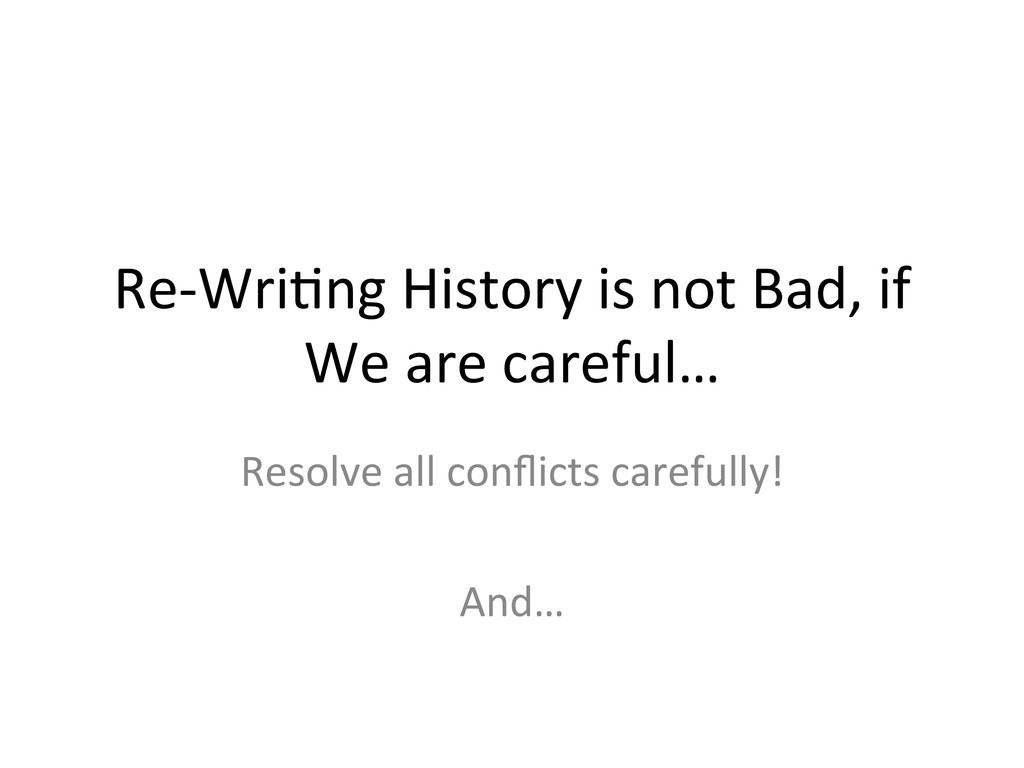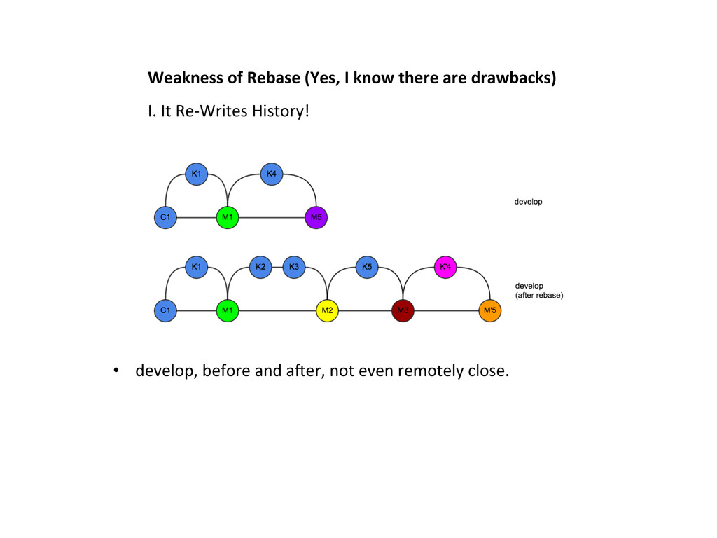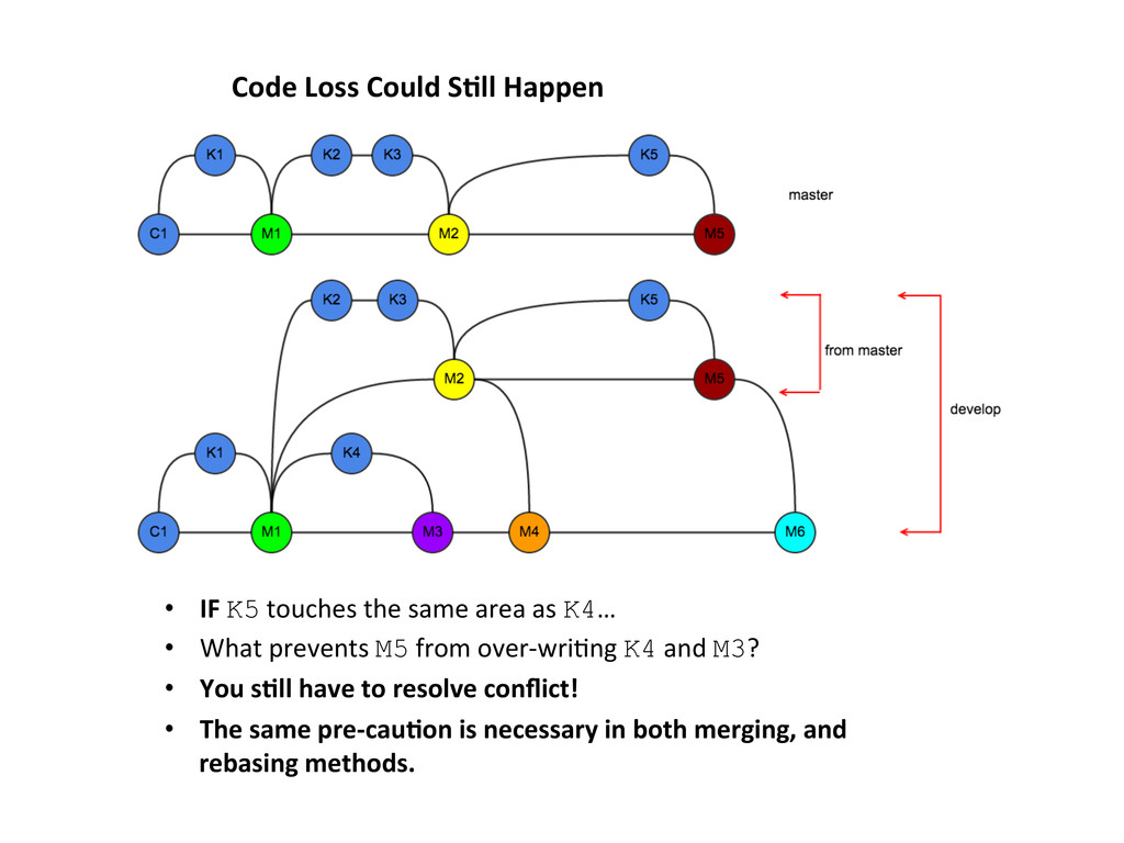 the same area as K4… • What prevents M5 from over-‐wriLng K4 and M3? • You s&ll have to resolve conflict! • The same pre-‐cau&on is necessary in both merging, and rebasing methods.