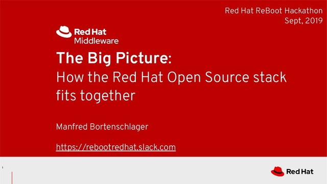 In this webinar we covered Red Hat’s open source philosophy Hat and how communities create outstanding software. We then zoomed in on the middleware tools that Red Hat offers, how these fit together and how they can be leveraged.