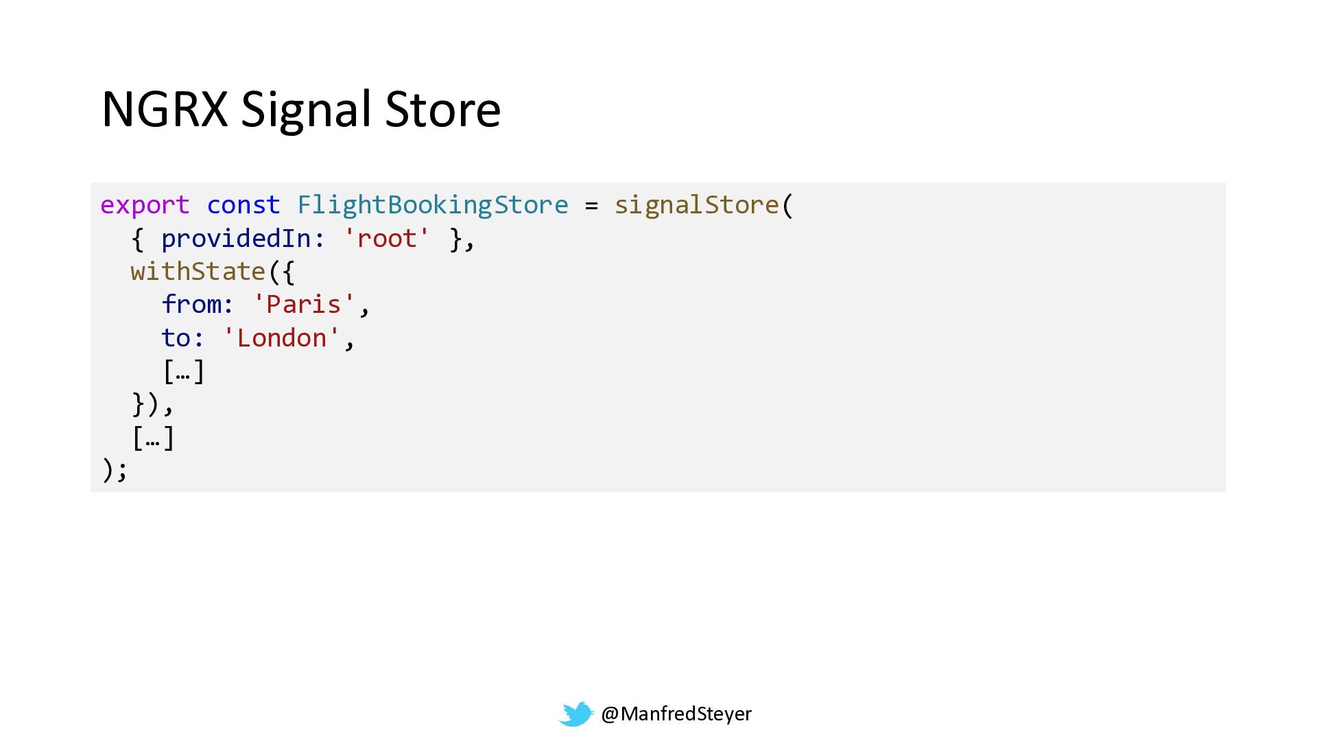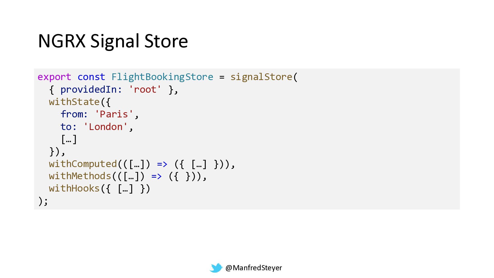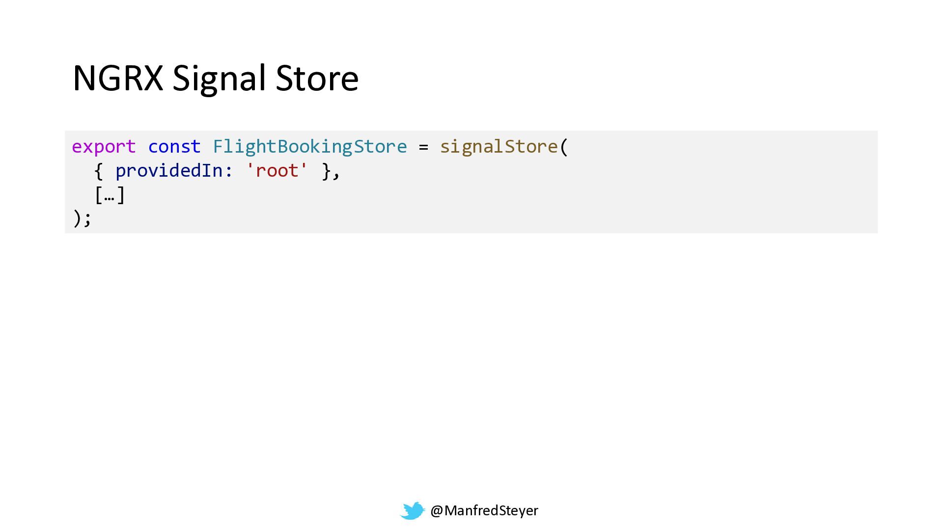 @ManfredSteyer NGRX Signal Store export const FlightBookingStore = signalStore( {