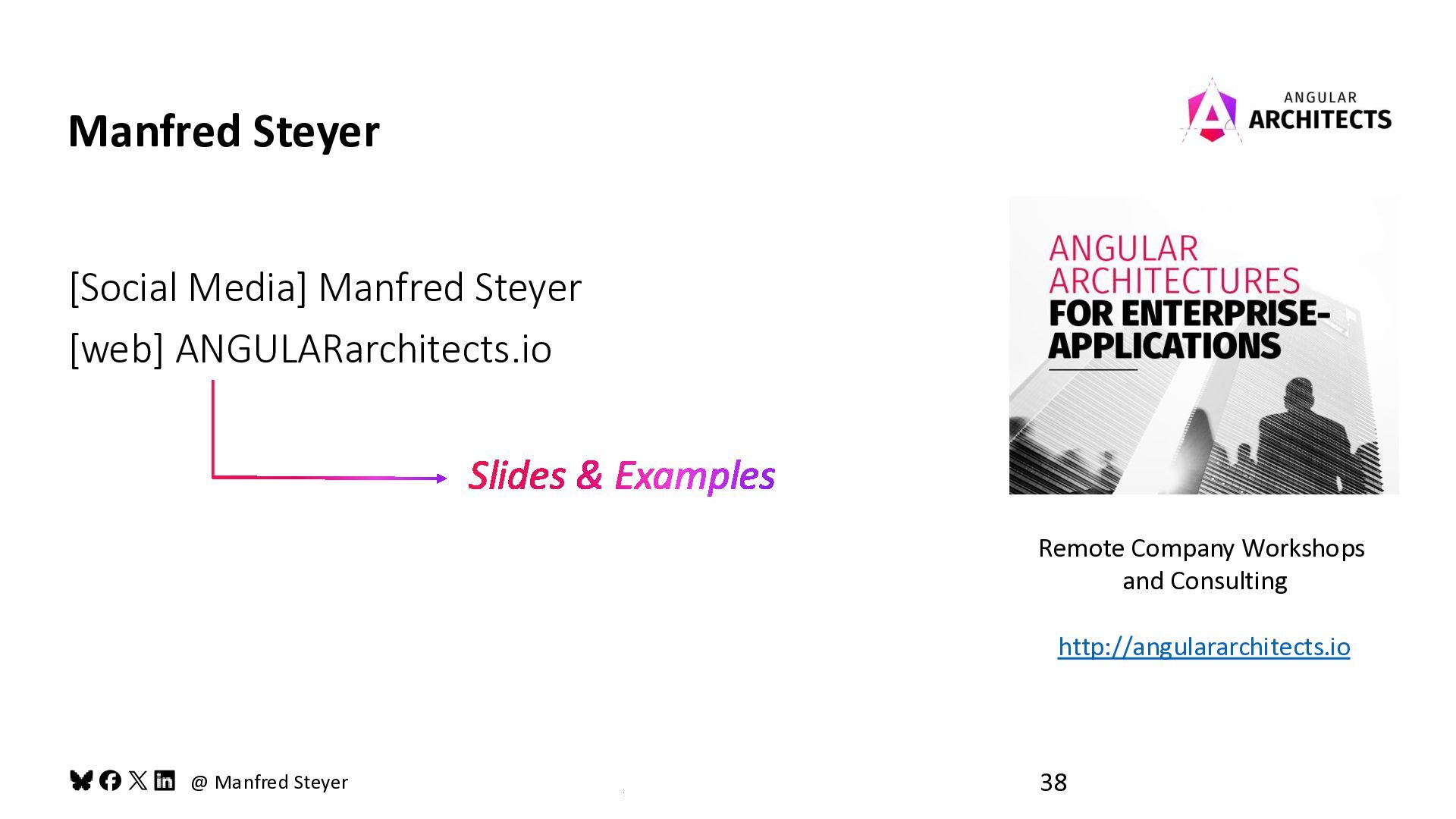 @ Manfred Steyer Slides & Examples Remote Company Workshops and Consulting http://angulararchitects.io