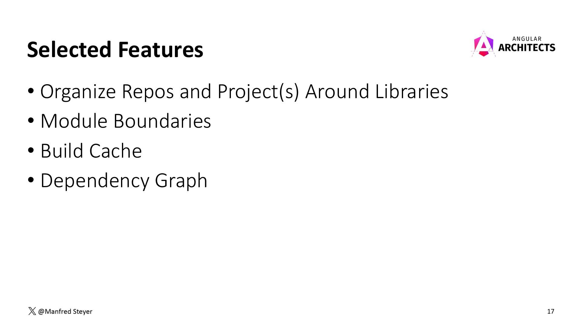 Organize Repos and Project(s) Around Libraries • Module Boundaries • Build Cache • Dependency Graph Selected Features