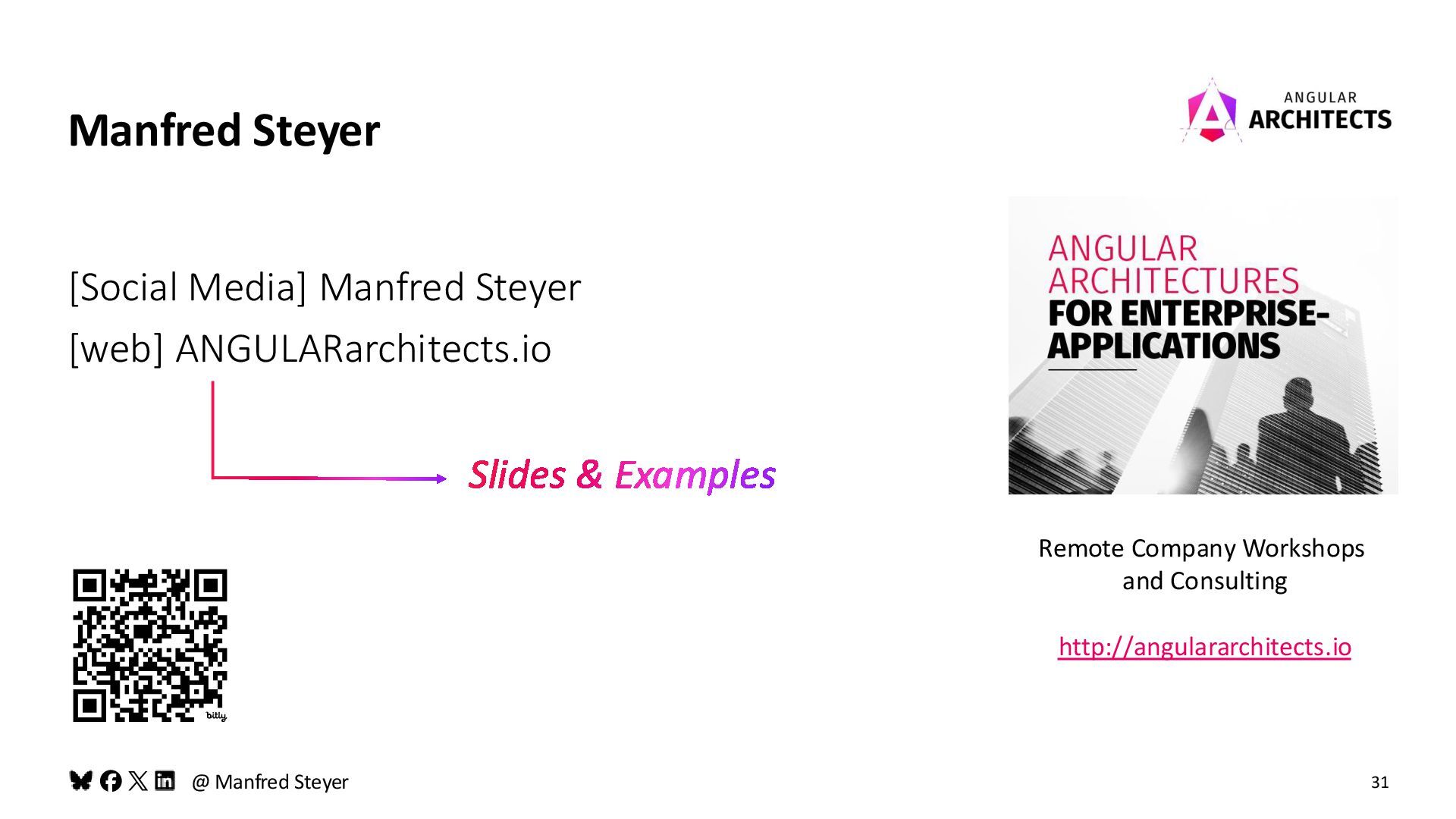 me (Remote) Angular Workshops and Consulting Google Developer Expert for Angular Blog, Books, Articles, and Talks about Angular Manfred Steyer, ANGULARarchitects.io