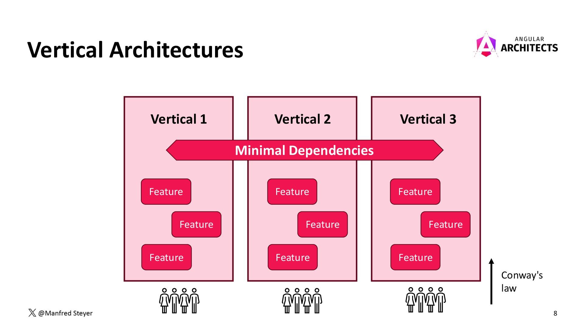 Architectures < Minimal Dependencies Vertical 1 Vertical 2 Vertical 3 Feature Feature Feature Feature Feature Feature Feature Feature Feature Conway's law