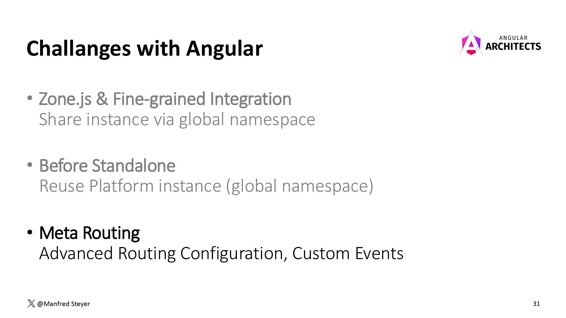 me (Remote) Angular Workshops and Consulting Google Developer Expert for Angular Blog, Books, Articles, and Talks about Angular Manfred Steyer, ANGULARarchitects.io