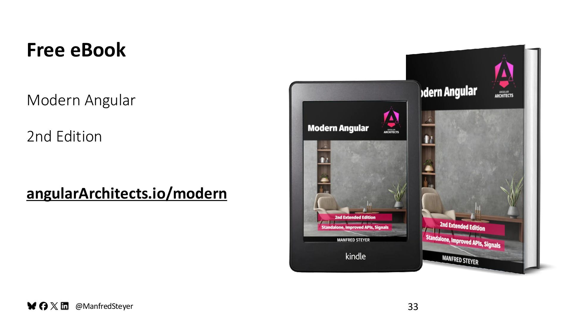 @ManfredSteyer @ManfredSteyer 33 Modern Angular 2nd Edition angularArchitects.io/modern Free eBook