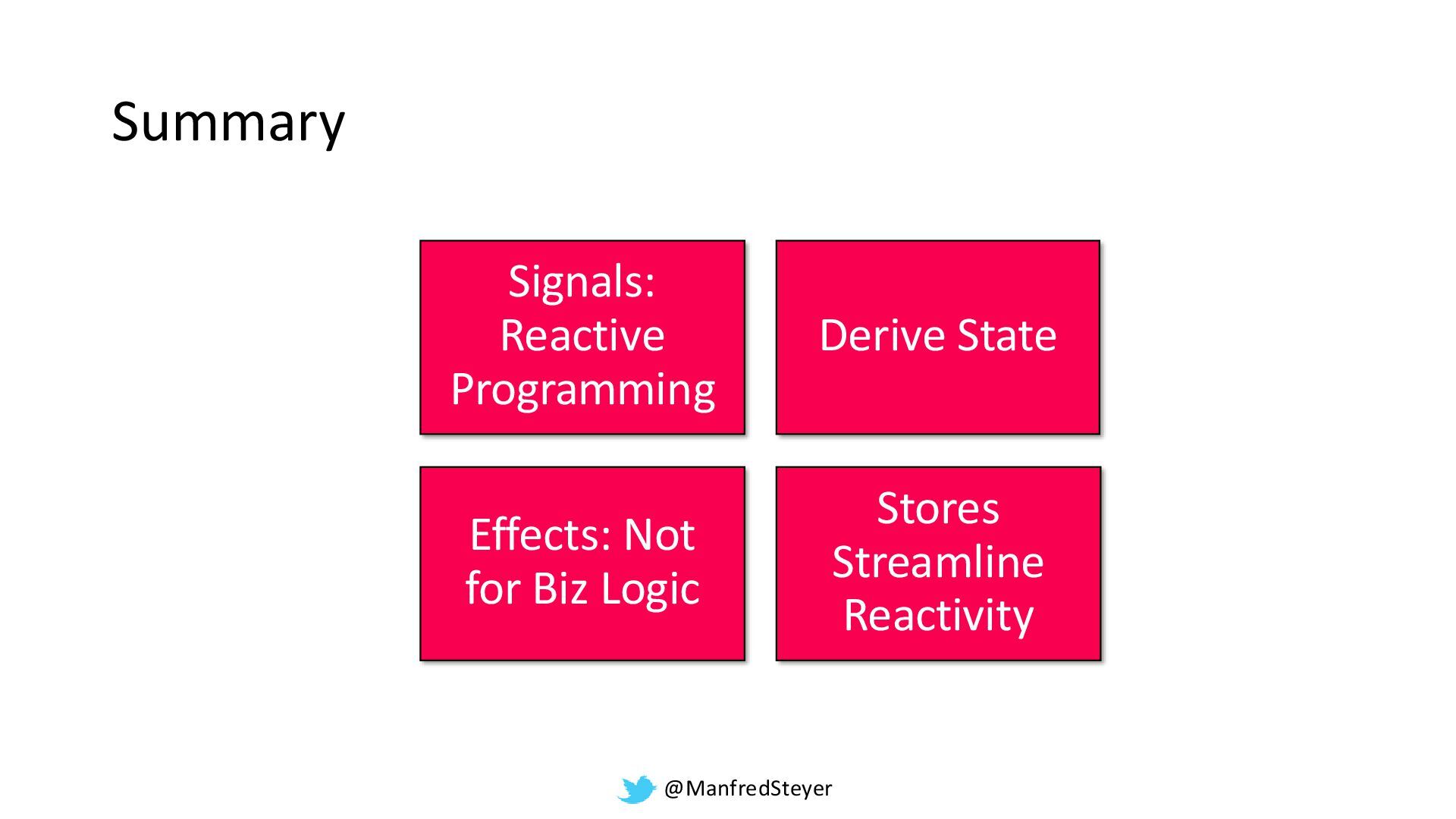 @ManfredSteyer Summary Signals: Reactive Programming Derive State Effects: Not for