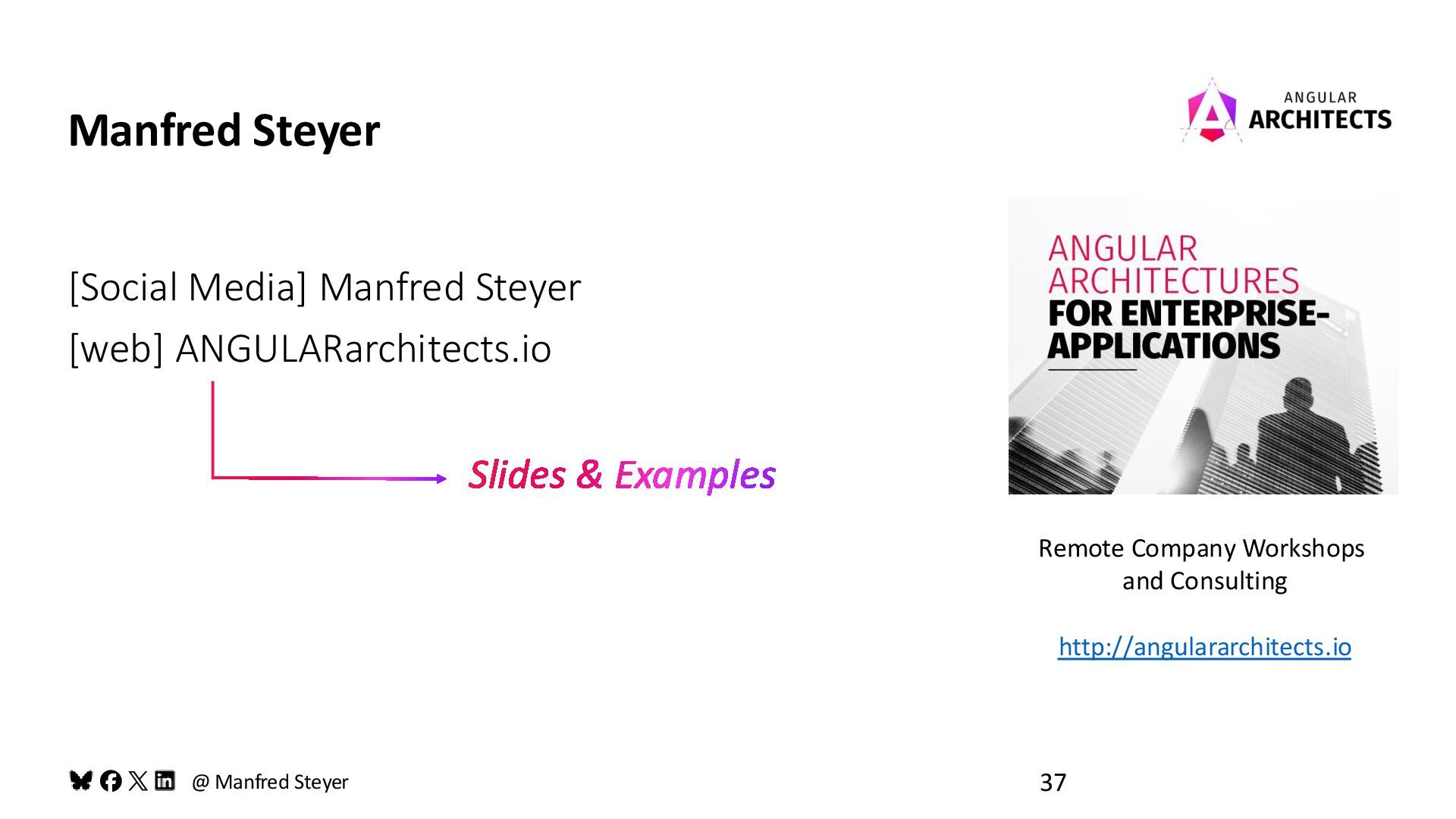 @ Manfred Steyer Slides & Examples Remote Company Workshops and Consulting http://angulararchitects.io