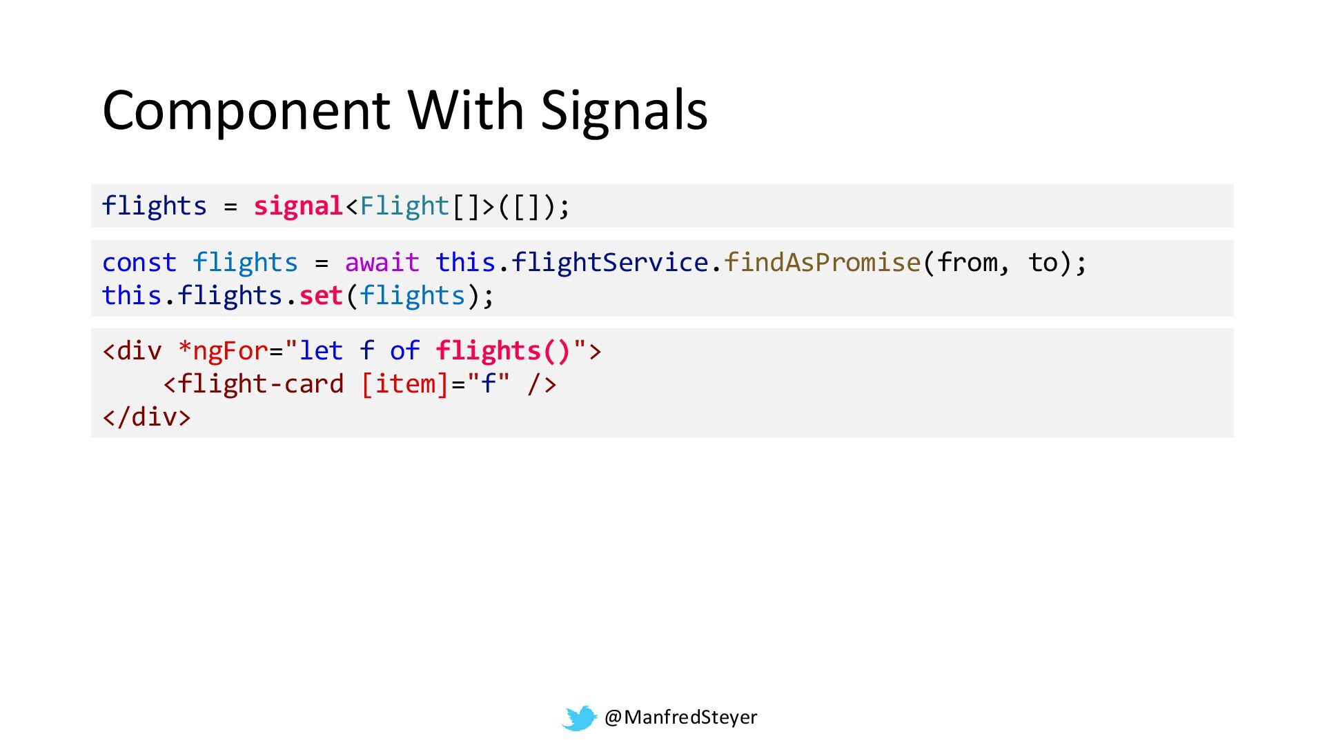 @ManfredSteyer Component With Signals flights = signal<Flight[]>([]); const flights =
