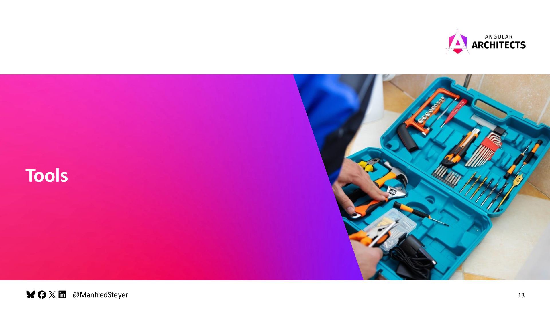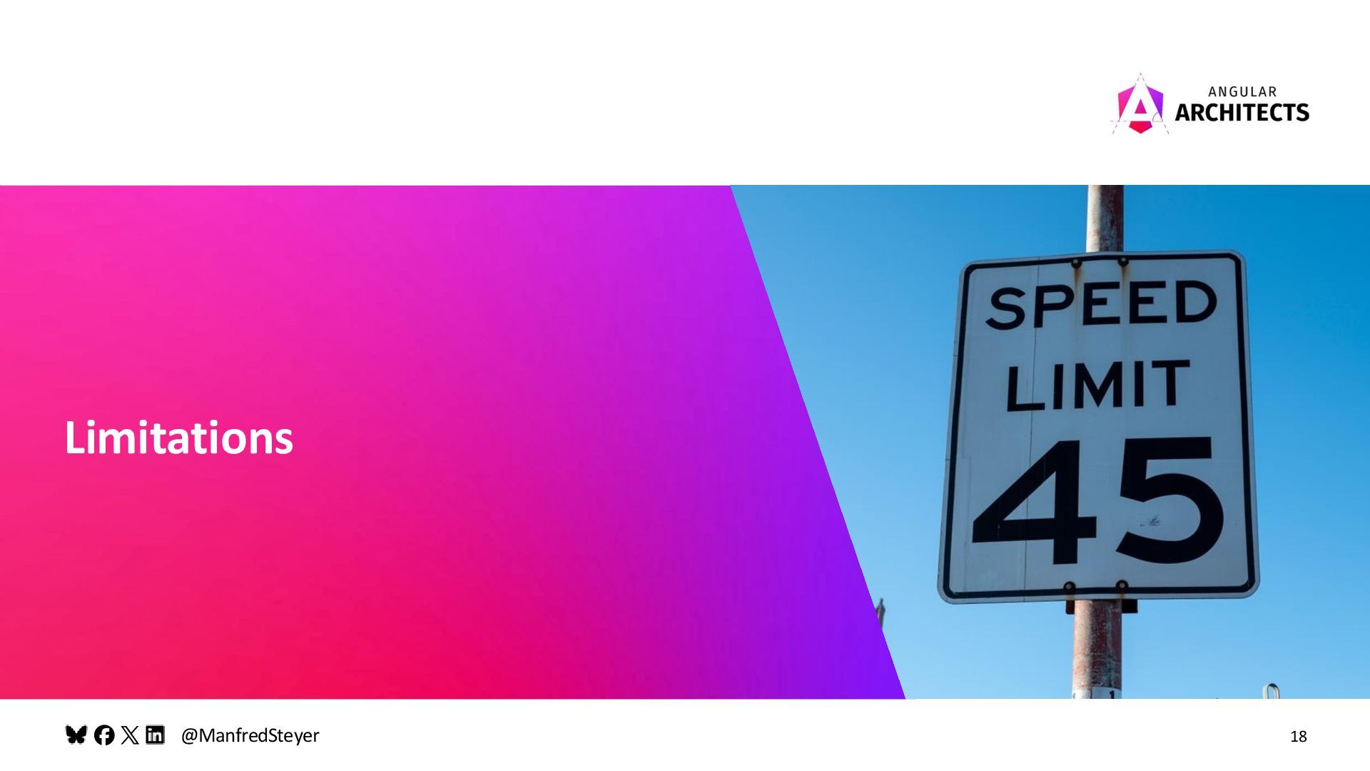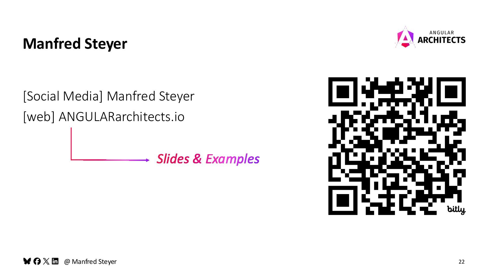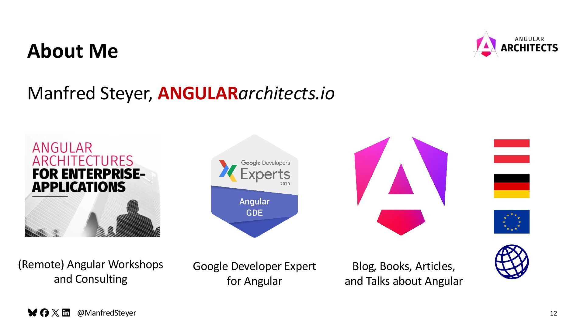 About Me (Remote) Angular Workshops and Consulting Google Developer Expert for Angular Blog, Books, Articles, and Talks about Angular Manfred Steyer, ANGULARarchitects.io