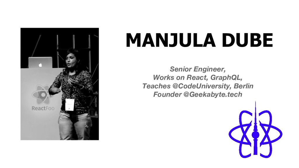 MANJULA DUBE Senior Engineer, Works on React, GraphQL, Teaches @CodeUniversity,