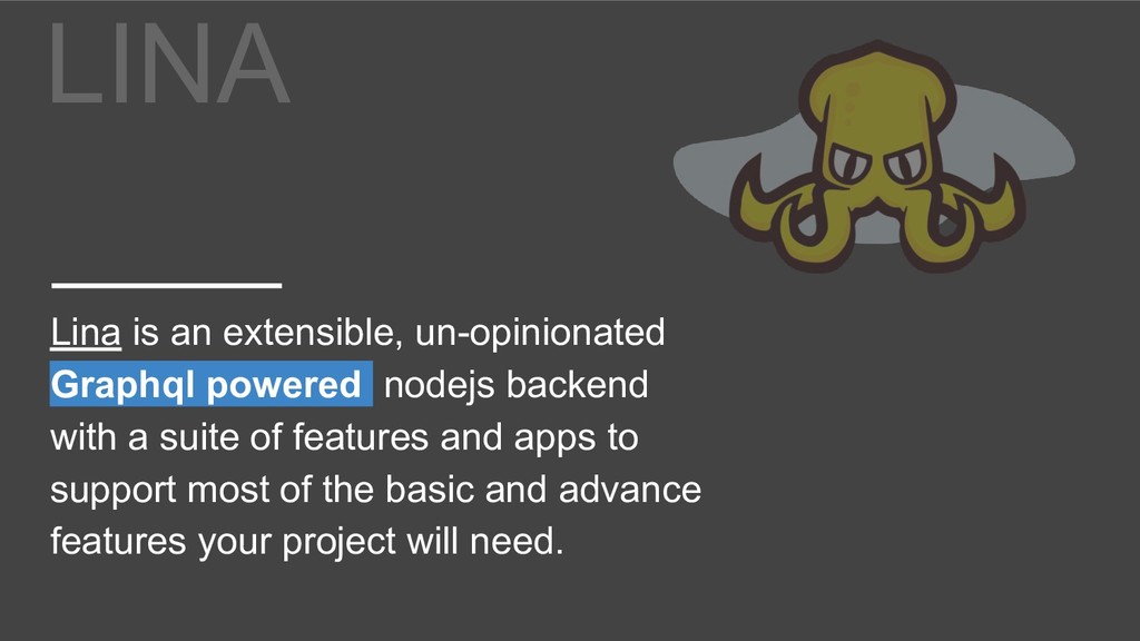Lina is an extensible, un-opinionated Graphql powered nodejs backend with