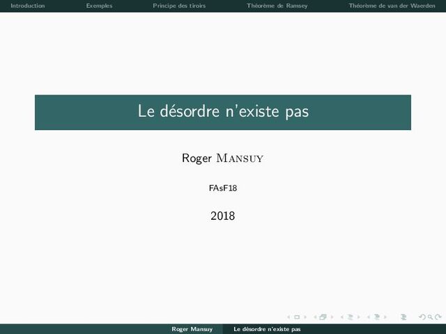 Th´ eor` eme de van der Waerden B, B, B, B, B, B, B, B, B B, B, B, B, B, B, B, B, R B, B, B, B, B, B, B, R, B B, B, B, B, B, B, B, R, R B, B, B, B, B, B, R, B, B B, B, B, B, B, B, R, B, R B, B, B, B, B, B, R, R, B B, B, B, B, B, B, R, R, R B, B, B, B, B, R, B, B, B B, B, B, B, B, R, B, B, R B, B, B, B, B, R, B, R, B B, B, B, B, B, R, B, R, R B, B, B, B, B, R, R, B, B B, B, B, B, B, R, R, B, R B, B, B, B, B, R, R, R, B B, B, B, B, B, R, R, R, R B, B, B, B, R, B, B, B, B B, B, B, B, R, B, B, B, R B, B, B, B, R, B, B, R, B B, B, B, B, R, B, B, R, R B, B, B, B, R, B, R, B, B B, B, B, B, R, B, R, B, R B, B, B, B, R, B, R, R, B B, B, B, B, R, B, R, R, R B, B, B, B, R, R, B, B, B B, B, B, B, R, R, B, B, R B, B, B, B, R, R, B, R, B B, B, B, B, R, R, B, R, R B, B, B, B, R, R, R, B, B B, B, B, B, R, R, R, B, R B, B, B, B, R, R, R, R, B B, B, B, B, R, R, R, R, R B, B, B, R, B, B, B, B, B B, B, B, R, B, B, B, B, R B, B, B, R, B, B, B, R, B B, B, B, R, B, B, B, R, R B, B, B, R, B, B, R, B, B Roger Mansuy Le d´ esordre n’existe pas