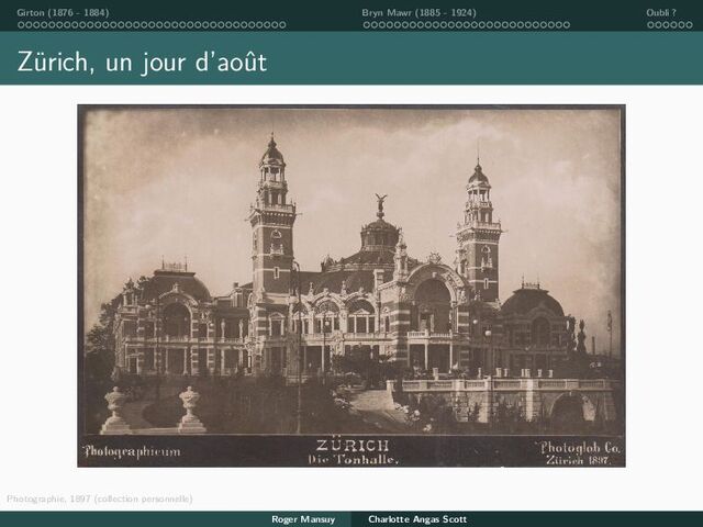 ? À l’issue de 4 années d’études à Girton, les étudiantes peuvent obtenir (selon qu’elles choisissent classics ou modern languages) ▶ ”the degree certificate”, ▶ ”the college certificate”. Les exigences sont celles des diplômes de l’Université. ... mais elles ne peuvent recevoir de diplômes universitaires. Roger Mansuy Charlotte Angas Scott