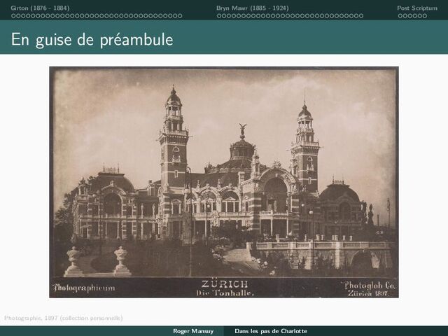 Scriptum The International Congress of Mathematicians in Paris, Charlotte Angas Scott, Bull. Amer. Math. Soc. 7(2) : 57-79 (novembre 1900) Roger Mansuy Dans les pas de Charlotte