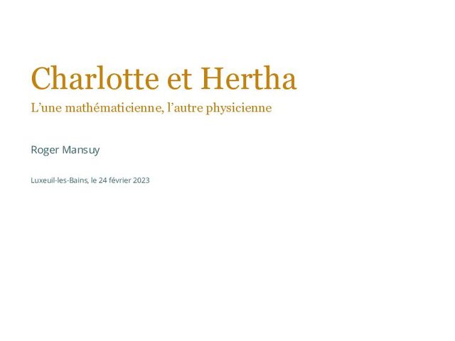 Exposé d'histoire des science avec les parcours Charlotte Angas Scott et Hertha Ayrton à destination des élèves de terminale du lycée Louis Lumière à Luxeuil-les-Bains le 24 février 2023