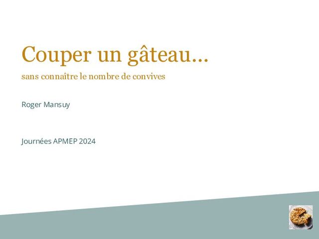 tailles toutes différentes. Pour n = 6, un découpage en 13 parts est 30 210 , 27 210 , 25 210 , 22 210 , 20 210 , 18 210 , 17 210 , 13 210 , 12 210 , 10 210 , 8 210 , 5 210 , 3 210 Pour n = 7, un découpage en 16 parts est 88 840 , 82 840 , 80 840 , 73 840 , 68 840 , 67 840 , 58 840 , 53 840 , 52 840 , 47 840 , 38 840 , 37 840 , 32 840 , 25 840 , 23 840 , 17 840 Non minimal! Pour n = 8, un découpage en 19 parts est 259 2520 , 195 2520 , 185 2520 , 179 2520 , 165 2520 , 161 2520 , 160 2520 , 155 2520 , 150 2520 , 130 2520 , 120 2520 , 119 2520 , 115 2520 , 101 2520 , 95 2520 , 85 2520 , 69 2520 , 56 2520 , 21 2520 Non minimal!