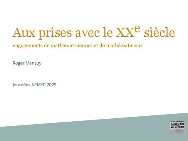 Aux prises avec le XXe siècle est un exposé pour les journées de l'APMEP de Toulon (octobre 2025).