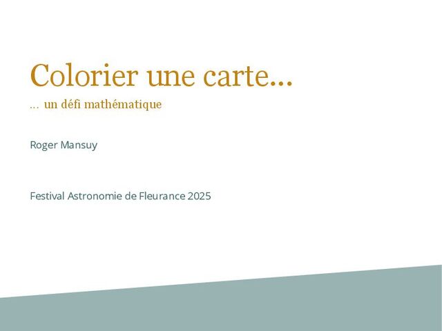 Exposé pour le marathon des sciences du 35e Festival d'Astronomie de Fleurance le 2 août 2025. Il s'agit d'une présentation succincte des théorèmes des 4/7/9... couleurs
