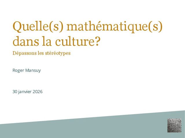 Exposé de sensibilisation aux mathématiques présentes dans les différentes manifestations/expressions culturelles. Donné le 30 janvier 2026 pour la journée académique de l'Institut de Recherche sur l’Enseignement des Mathématiques de l'université de Limoges