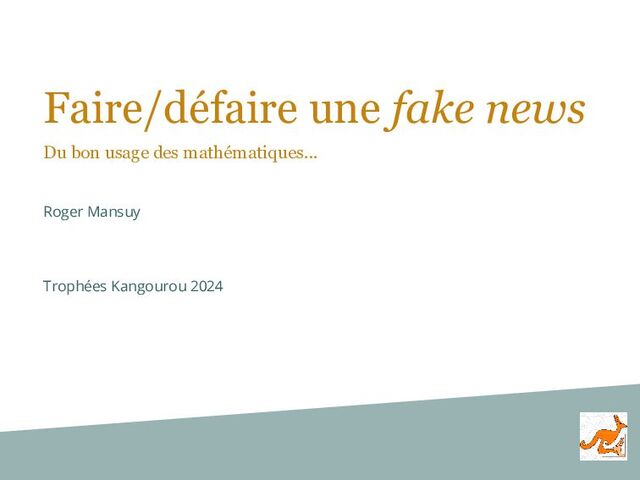 Exposé pour les trophées Kangourou le 8 juin 2024 à l'Institut Henri Poincaré (Paris). Le sujet consiste à utiliser la loi de Benford pour construire une fake news puis d'examiner la "crédibilité" de celle-ci. Il s'agit autant d'une intervention de culture mathématique que d'éducation aux médias.