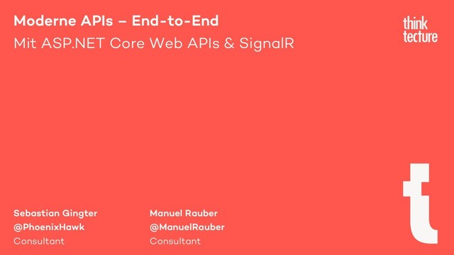 Moderne APIs bieten neben der gängigen HTTPS-Interaktion auch die Möglichkeit zur Echtzeitkommunikation auf Basis von WebSockets. Mit Hilfe von Microsofts Open-Source-Plattform ASP.NET Core MVC und SignalR lassen sich im Handumdrehen Web-APIs und Push-Services entwickeln. Doch damit nicht genug: Weitere Themen wie Security, Rate-Limiting, eine sinnvolle Dokumentation und ein vernünftiges zentralisiertes Logging sind mit von der Partie. Und jeder dieser einzelnen Bereiche bietet uns eine neue Herausforderung. Sebastian Gingter und Manuel Rauber zeigen Ihnen in diesem Workshop, wie man mit .NET Core moderne APIs auf und für verschiedene Plattformen entwickeln kann. Zusätzlich wird durch den Einsatz von Entity Framework Core die Anbindung an verschiedene Datenbanken ermöglicht. Durch den Einsatz weiterer Open-Source-Bibliotheken fürs Logging oder zur automatischen Generierung einer Swagger/OpenAPI-Dokumentation ergänzen wir die API um weitere Funktionalitäten. Eine Client-Anwendung, das Deployment auf unterschiedliche Plattformen und das Deployment in die Cloud runden den Workshop ab – vollständig End-to-End eben!