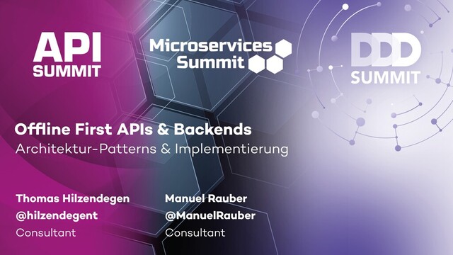 "Keine Internetverbindung" – ein Satz, den wir alle aus vielen Apps kennen, sei es Desktopanwendung oder Smartphone App. Oftmals sind die Clients auf dem jeweiligen Zielgerät installiert, bedienen sich aber einer externen Datenquelle, bspw. in Form eines HTTP APIs. Wie man sein Backend um eine offline-fähige Architektur erweitert, um es bspw. von einer SPA/PWA nutzen zu können, zeigen Thomas Hilzendegen und Manuel Rauber von Thinktecture in diesem Workshop. Denn bei einer offline-fähigen Implementierung sind nicht nur Lese-, sondern vor allem auch Schreibzugriffe wichtig. Sprich, die Daten müssen in beide Richtungen synchronisiert werden können, sobald die Internetverbindung wiederhergestellt wurde. Allgemein werden Themen im API Design, u.a. Synchronisationsstrategien von Anwendungs- und großen Binärdaten, Konfliktmanagement oder Datenbankarchitektur – sowohl für neue als auch bestehende Anwendungen – diskutiert. Am Beispiel einer PWA mit einem Backend in Java als auch in .NET Core werden Client und Server zur Umsetzung der besprochenen Konzepte und Patterns gezeigt.
