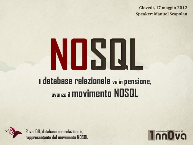 Distribuito Open-source Scalabile orizzontalmente In accordo con la definizione data su http://nosql-database.org/ Inteso come modello di trattamento del dato Deve essere scalabile “by design” Supporto?