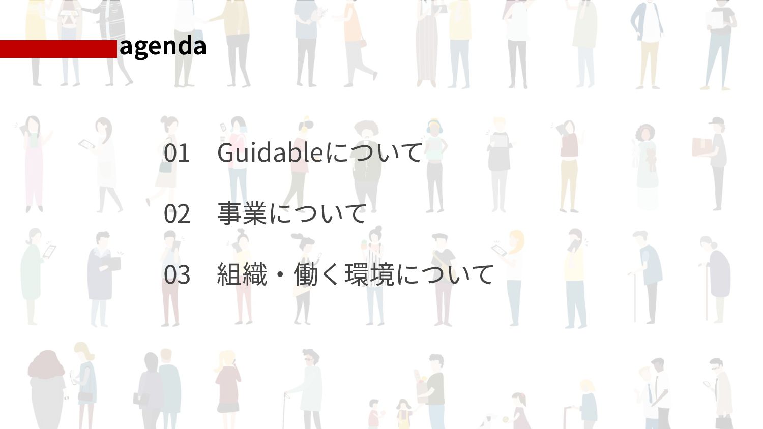 agenda 01 Guidableについて 02 事業について 03 組織‧働く環境について