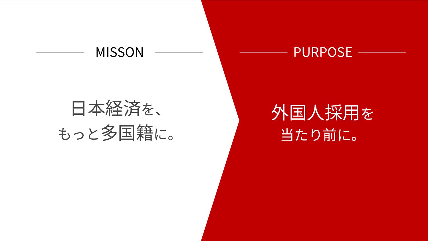 ⽇本経済を、 もっと多国籍に。 外国⼈採⽤を 当たり前に。 MISSON PURPOSE