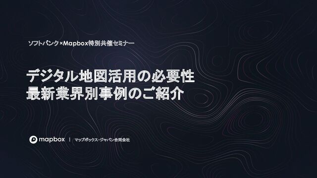 2023年7月24日に開催したソフトバンク×Mapbox特別共催セミナーの登壇内容です。 この資料に関するお問い合わせ: https://www.mapbox.jp/contact
