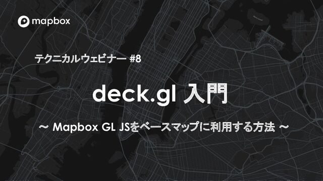 本スライドは、Mapbox Japanによるウェビナー「【テクニカルウェビナー#8】deck.gl 入門〜 Mapbox GL JSをベースマップに利用する方法 〜」のスライドです。