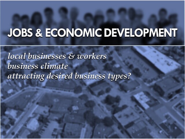 April 23, 2014. JOBS & ECONOMIC DEVELOPMENT JOBS OVERVIEW MOST COMMON RESIDENTS’ OCCUPATIONS 16% OFFICE & ADMINISTRATIVE SUPPORT 1,484 RESIDENTS 13% MANAGEMENT OCCUPATIONS 1,182 10% SALES & RELATED 883 7% education, training & library 609 6% food prep. & serving related 575 6% business & financial operations 571