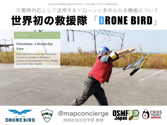 ୈճLJ[LJ1*5$)υϩʔϯ(P/FYUʮυϩʔϯͷ׆༻ͱະདྷʯ !NBQDPODJFSHF ٿࣾձڞੜֶ෦ڭत ࡂ࣌ରԠͱͯ͠׆༻͢ΔυϩʔϯͱٻΊΒΕΔػೳʹ͍ͭͯ ੈքॳͷٹԉୂʮDRONE BIRDʯ