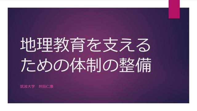 地理教育を支えるための体制の整備:井田仁康(筑波大学人間系教授) --- 持続可能な社会づくりに向けた地理教育の充実 -SDGs実現における教育の役割- 日本学術会議公開シンポジウム(2017Nov04)開催報告