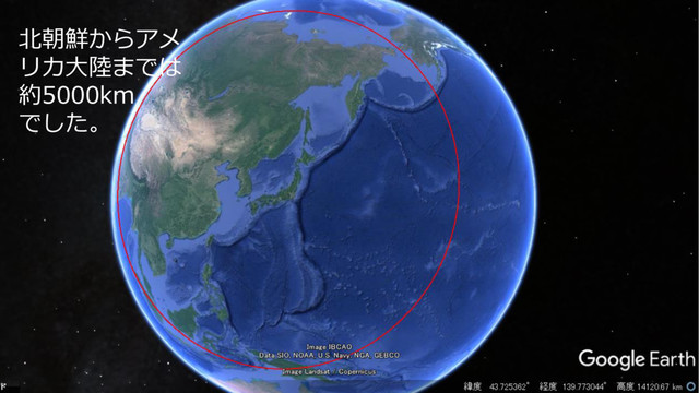 北朝鮮からアメ リカ大陸までは 約5000km でした。