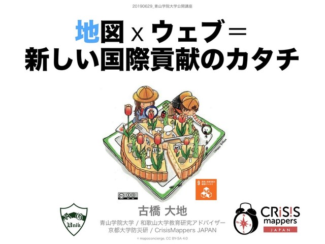 青山学院大学公開講座「地図×ウェブ=新しい国際貢献のカタチ」 #AoyamaGSC #古橋研究室 #一億総伊能化 --- 地図×ウェブ=新しい国際貢献のカタチ 第1回 2019/6/29(土) https://www.aoyama.ac.jp/outline/effort/extension/sagamihara_02/detail_01.html