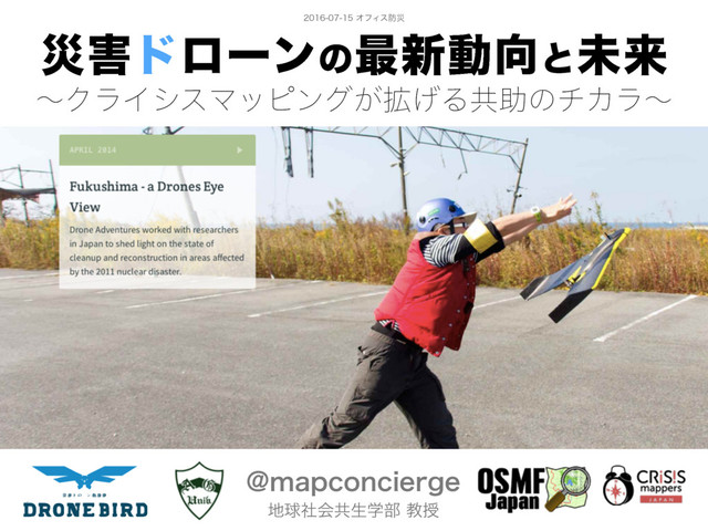 2010年のハイチ地震以降、世界中で発生した大規模災害において、最先端の災害情報支援活動「クライシスマッピング」に参画。そこから派生した災害ドローン救援隊「ドローンバード」とこれからのドローン活用について紹介します。