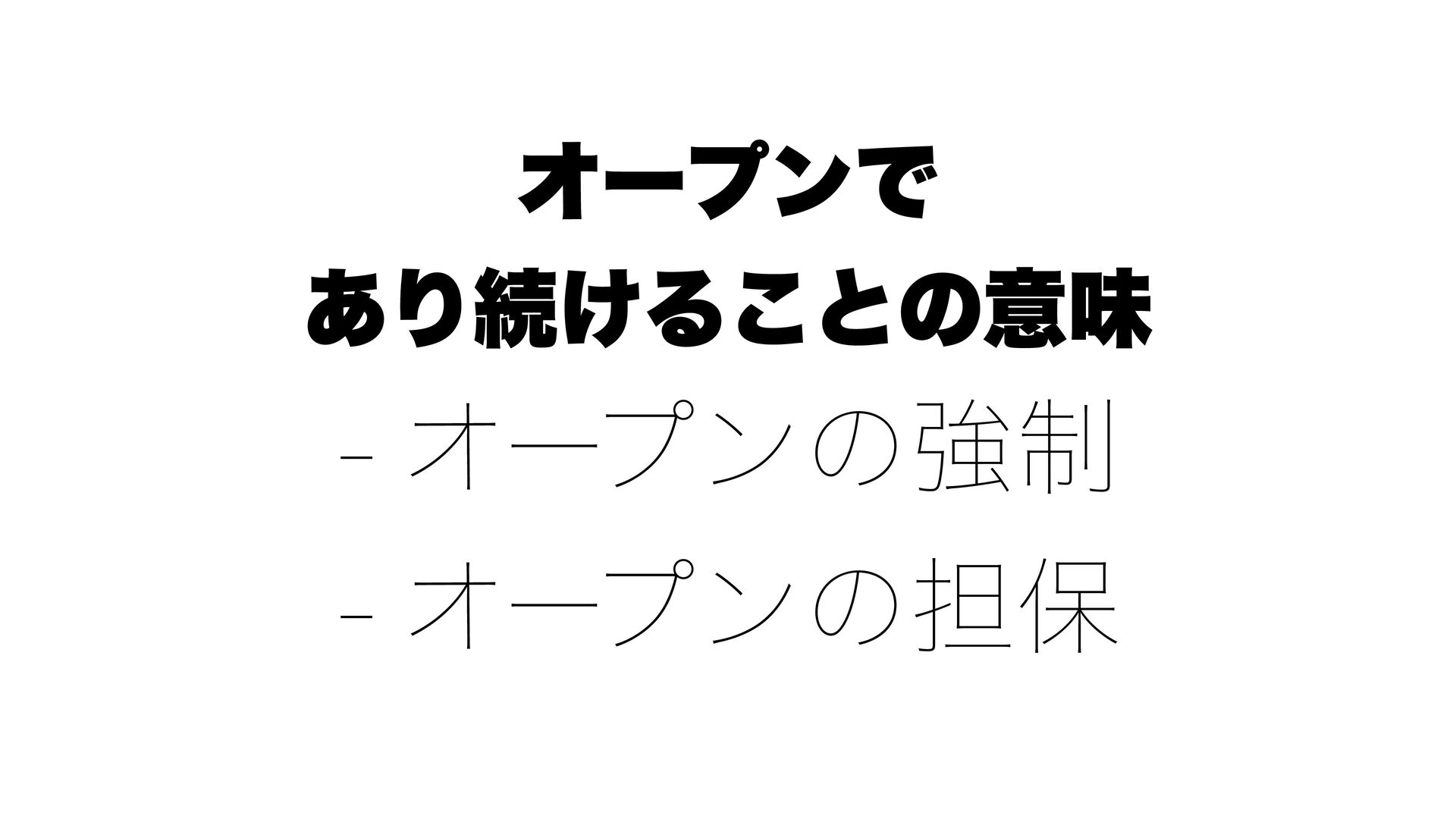 ΦʔϓϯͰ ͋Γଓ͚Δ͜ͱͷҙຯ Φʔϓϯͷڧ੍ Φʔϓϯͷ୲อ