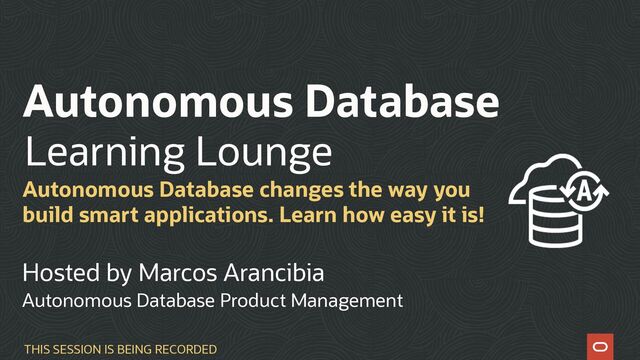 Hosted by Marcos Arancibia, Senior Principal Product Manager, Autonomous Database