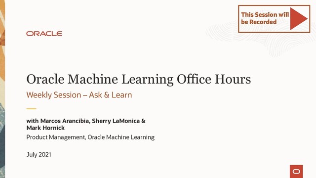 On this weekly Office Hours for Oracle Machine Learning on Autonomous Database, Jie Liu, Data Scientist for Oracle Machine Learning, will cover Cross-Validation methods, why they are useful and how to run it using in-Database methods using OML and also Embedded Python Execution open-source methods. He will also present a demo running on a notebook with OML4Py.