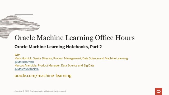 Mark Hornick, Senior Director of Product Management for Data Science and Machine Learning will join us and present.
