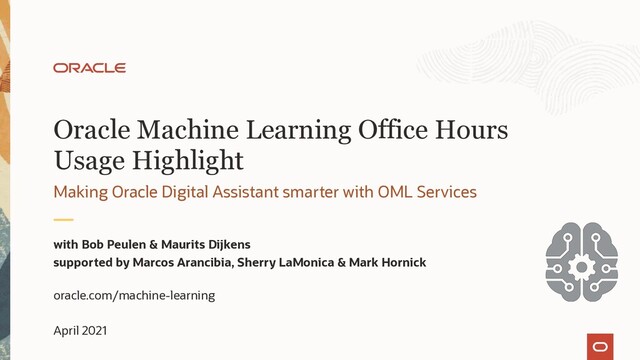 In this Office Hours for Oracle Machine Learning on Autonomous Database, Senior Oracle Cloud Engineer Bob Peulen, and Principal Cloud Specialist Engineer Maurits Dijkens explain how to use the Oracle Digital Assistant with Oracle Machine Learning Services REST API, and demonstrate a simple use case of a Smart ChatBot that can request a scoring in real-time.