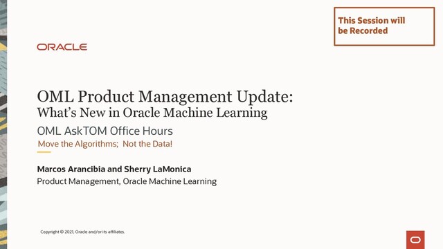 On this weekly Office Hours for Oracle Machine Learning on Autonomous Database, the OML team gave an update on the many new features of OML, including: OML Notebook updates, updated structure for OML and REST URLs, OML Services support for Cluster ONNX models, support for Italian language on OML Services cognitive text, new filters for modelType and shared attributes. They also showed a new ESA Wiki model for Database 19c that can be used on premises and in the Cloud.