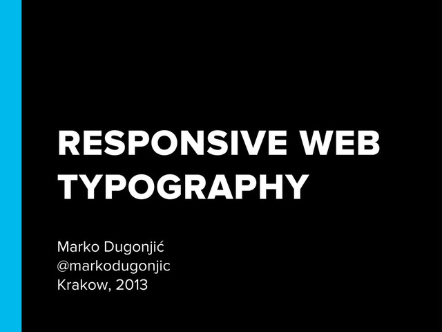 h y T h a n k y o u f o r t h e l o v e l y i n t r o d u c t i o n , R a f a l ! P l e a s e g i v e a w a r m r o u n d o f a p p l a u s e t o t h e o r g a n i z e r s . L e t m e a s k y o u s o m e t h i n g … H a v e y o u e v e r s a v e d a n a r t i c l e w i t h t h e i n t e n t i o n t o r e a d i t l a t e r o n a m o b i l e d e v i c e i n t h e p a r k a s s u m i n g t h a t i t s r e s p o n s i v e w e b d e s i g n i s a l l i t t a k e s f o r t h e b e s t p o s s i b l e r e a d i n g e x p e r i e n c e ? H a v e y o u e v e r b e e n d i s a p p o i n t e d w h e n y o u r e a l i z e d t h a t a r t i c l e s o n m o b i l e a r e h a r d t o r e a d b e c a u s e o f t h e p o o r l y c h o s e n l e t t e r s i z e a n d l a y o u t t h a t a p p e a r t o b e d i s p r o p o r t i o n a l t o t h e s c r e e n ? S o , w h y i s t h i s h a p p e n i n g ? H o w d o s u c h , o t h e r w i s e b e a u t i f u l r e s p o n s i v e d e s i g n s , e n d u p b e i n g s o p o o r l y e x e c u t e d o n m o b i l e ? T h e a n s w e r i s i n f a c t q u i t e c l e a r — s u c h w e b s i t e s w e r e d e v e l o p e d o n t h e d e s k t o p c o m p u t e r , w i t h d e s k t o p r e a d i n g d i s t a n c e , w i t h a _ d e s k t o p d o w n _ , r a t h e r t h a n a _ m o b i l e u p _ a p p r o a c h . I t ’ s o b v i o u s t h a t t h e c o r e r e s p o n s i v e w e b d e s i g n a r s e n a l o f m e d i a q u e r i e s , f l e x i b l e l a y o u t s a n d f l e x i b l e i m a g e s i s n o t s u f f i c i e n t . w e b t y p o g r p h y a j s d h j a h s g d T h a n k y o u f o r t h e l o v e l y i n t r o d u c t i o n , R a f a l ! P l e a s e g i v e a w a r m r o u n d o f a p p l a u s e t o t h e o r g a n i z e r s . L e t m e a s k y o u s o m e t h i n g … H a v e y o u e v e r s a v e d a n a r t i c l e w i t h t h e i n t e n t i o n t o r e a d i t l a t e r o n a m o b i l e d e v i c e i n t h e p a r k a s s u m i n g t h a t i t s r e s p o n s i v e w e b d e s i g n i s a l l i t t a k e s f o r t h e b e s t p o s s i b l e r e a d i n g e x p e r i e n c e ? H a v e y o u e v e r b e e n d i s a p p o i n t e d w h e n y o u r e a l i z e d t h a t a r t i c l e s o n m o b i l e a r e h a r d t o r e a d b e c a u s e o f t h e p o o r l y c h o s e n l e t t e r s i z e a n d l a y o u t t h a t a p p e a r t o b e d i s p r o p o r t i o n a l t o t h e s c r e e n ? S o , w h y i s t h i s h a p p e n i n g ? H o w d o s u c h , o t h e r w i s e b e a u t i f u l r e s p o n s i v e d e s i g n s , e n d u p b e i n g s o p o o r l y e x e c u t e d o n m o b i l e ? T h e a n s w e r i s i n f a c t q u i t e c l e a r — s u c h w e b s i t e s w e r e d e v e l o p e d o n t h e d e s k t o p c o m p u t e r , w i t h d e s k t o p r e a d i n g d i s t a n c e , w i t h a _ d e s k t o p d o w n _ , r a t h e r t h a n a _ m o b i l e u p _ a p p r o a c h . I t ’ s o b v i o u s t h a t t h e c o r e r e s p o n s i v e w e b d e s i g n a r s e n a l o f m e d i a q u e r i e s , f l e x i b l e l a y o u t s a n d f l e x i b l e i m a g e s i s n o t s u f f i c i e n t . # # M A N Y M O R E V A R I A B L E S A p a r t f r o m t h e o b v i o u s v a r i a b l e s — v i e w p o r t w i d t h a n d v i e w p o r t h e i g h t — t h e r e a r e o t h e r s , s u c h a s r e a d i n g d i s t a n c e , p i x e l d e n s i t y ( o r s c r e e n c r u d e n e s s ) , d e v i c e o r i e n t a t i o n a n d v i e w p o r t a s p e c t r a t i o , b u t a l s o t h e c o n t e n t h i e r a r c h y a n d i n f o r m a t i o n d e n s i t y . B e f o r e I e l a b o r a t e e a c h , l e t m e b r i e f l y e x p l a i n t h e r u l e s o f t h e p a r a g r a p h . # # # R e a d i n g d i s t a n c e T h e r e a r e t h r e e w h i t e s p a c e s i n s i d e t h e p a r a g r a p h t h a t a r e i n t e r d e p e n d e n t — t h e l e t t e r s p a c e , t h e w o r d s p a c e a n d t h e l i n e s p a c e . I f a n y o f t h e t h r e e i s c h a n g e d , a l l t h e o t h e r s s h o u l d b e r e a s s e s s e d , t o o . B y p r e s e r v i n g t h e w h i t e s p a c e h i e r a r c h y , w e c a n